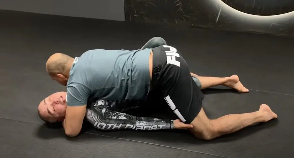 The guy on bottom will hold his hand on the back of the top fighters head. Whichever hand the bottom fighter is. The rubber guard is one of the most innovative and modern guards in submission grappling.